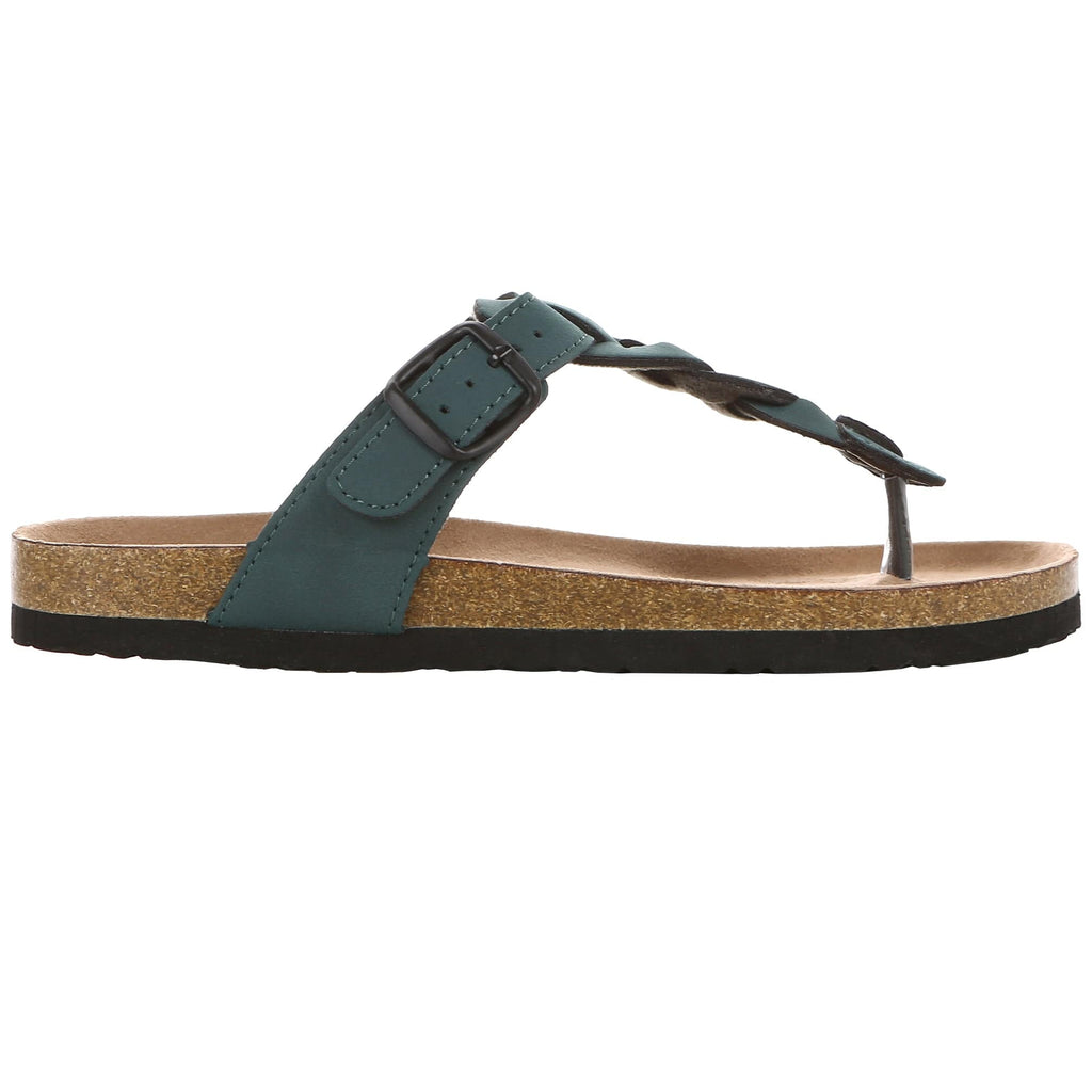 - Braided suede or synthetic leather upper features on trend one strap thong design with metal pin buckle